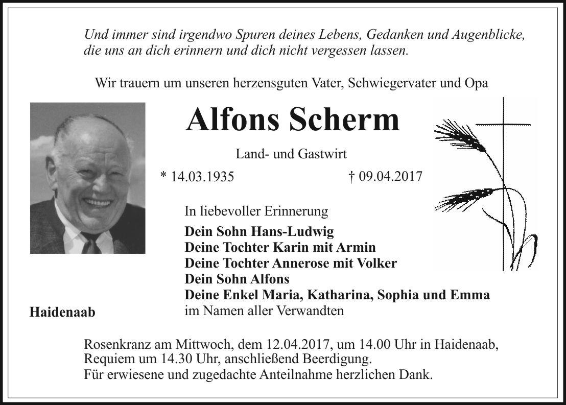 Rosenkranz am Mittwoch, dem 12.04.2017, um 14.00 Uhr in Haidenaab, Requiem um 14.30 Uhr, anschließend Beerdigung.