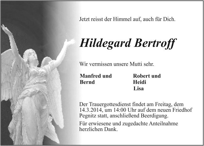 Der Trauergottesdienst findet am Freitag, dem 14.3.2014, um 14:00 Uhr auf dem neuen Friedhof Pegnitz statt, anschließend Beerdigung.