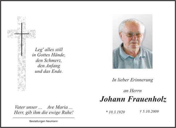 Der Trauergottesdienst findet am Freitag, 9.10.2009 um 14.30 Uhr in der Pfarrkirche Immenreuth statt, anschließend Verabschiedung auf dem Kirchplatz.