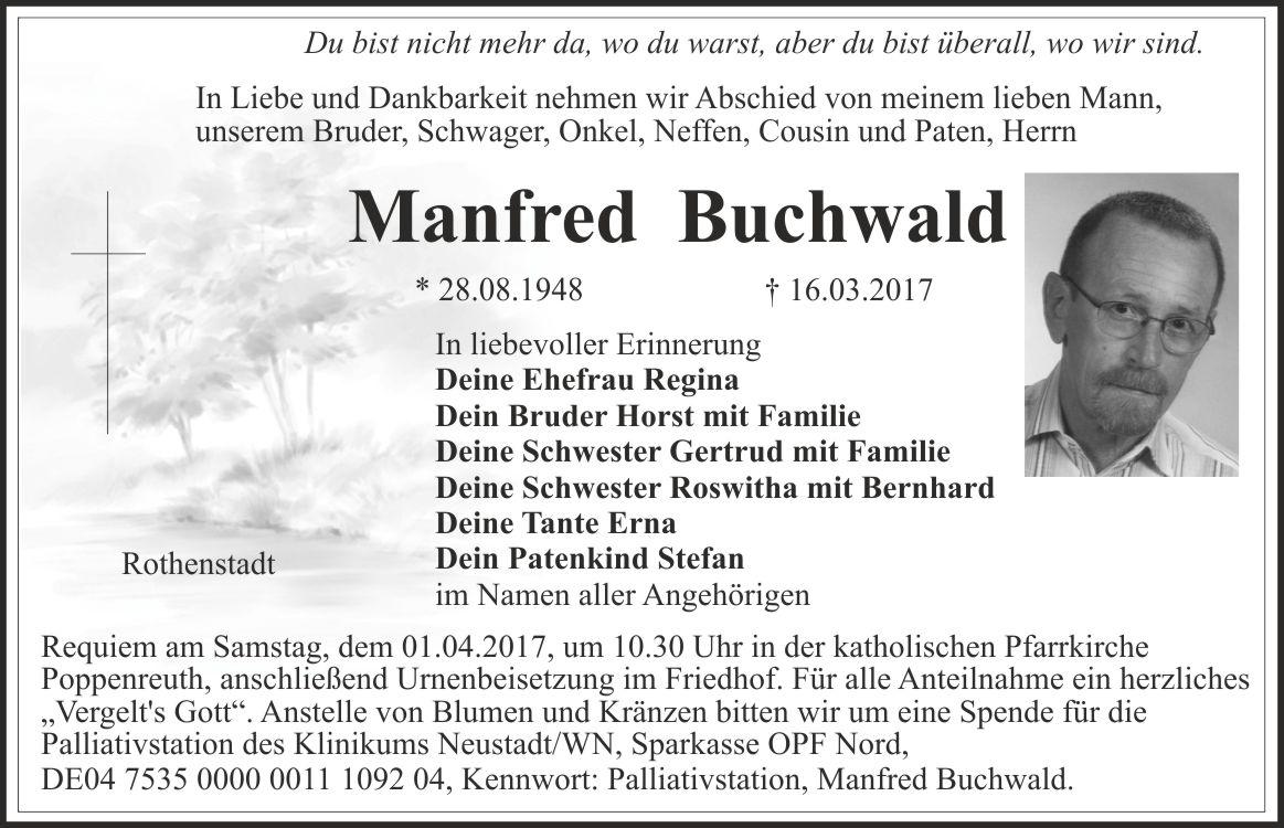 Requiem am Samstag, dem 01.04.2017, um 10.30 Uhr in der katholischen Pfarrkirche Poppenreuth, anschließend Urnenbeisetzung im Friedhof. Für alle Anteilnahme ein herzliches "Vergelt's Gott".