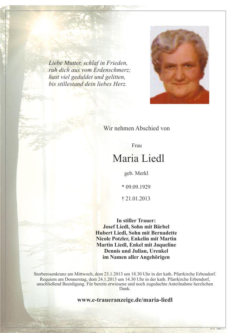 Requiem am Donnerstag, dem 24.1.2013 um 14.30 Uhr in der kath. Pfarrkirche Erbendorf, anschließend Beerdigung. Für bereits erwiesene und noch zugedachte Anteilnahme herzlichen Dank.