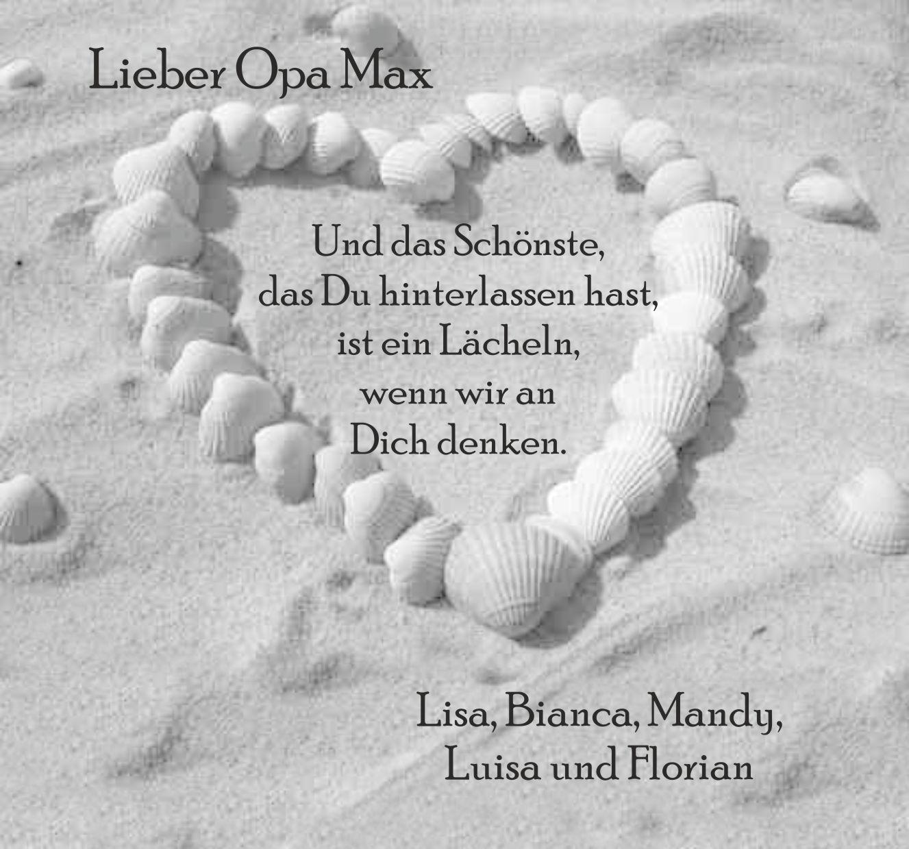 Von Beileidsbezeigungen am Grab bitten wir Abstand zu nehmen. Für erwiesene und noch zugedachte Anteilnahme ein herzliches "Vergelt's Gott".
