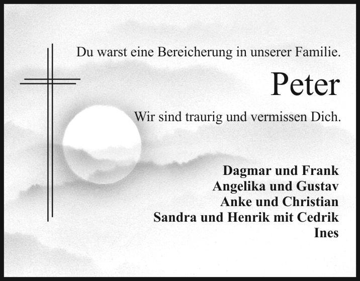 Der Trauergottesdienst mit anschließender Beerdigung findet am Donnerstag, dem 13.04.2017, um 13.00 Uhr in der Christuskirche Speichersdorf statt.